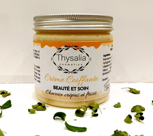Crème coiffante pour cheveux crépus et frisés, idéal pour nourrir en profondeur, maintenir l'hydratation, adoucir et faciliter le démêlage et le coiffage.